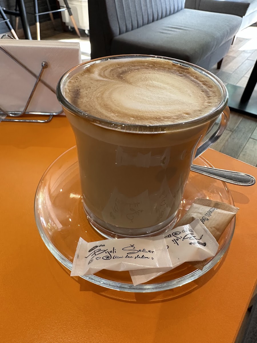 The drink menu leans toward coffees and teas that reflect its Turkish roots: the White Chocolate Moccha and Coffee Latte come highly regarded for their smoothness, while the Turkish tea serves as a simple, authentic touch for those who prefer something traditional yet economical. Light bites like sausage-topped simit and cheese sandwiches complement the drinks well, providing satisfying but straightforward options for a casual meal.